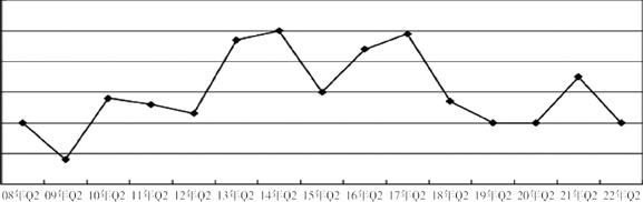 2022年二季度,外贸出口景气指数为100,与上季度持平,与去年同期相比下降了15个百分点,位于"微景气区间"(见图16)。其中,有32%的调查企业国外订单有了新的增长,比上季度上升了5个百分点;有36%的企业反映销售"持平",比上季度下降了10个百分点;有32%的企业反映"下降",比上季度上升了5个百分点。