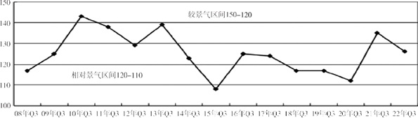 (五)企业盈利景气有所下降,降至"相对景气区间"